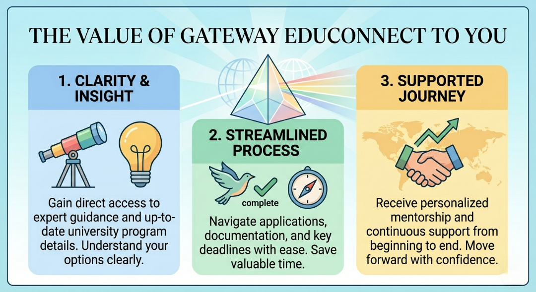 With a track record of successful admission propositions to over 15+ years and having placed over 23,000 students, a testament to that, Gateway Educonnect understands how important the date of admission propositions to the study abroad student and parent is.