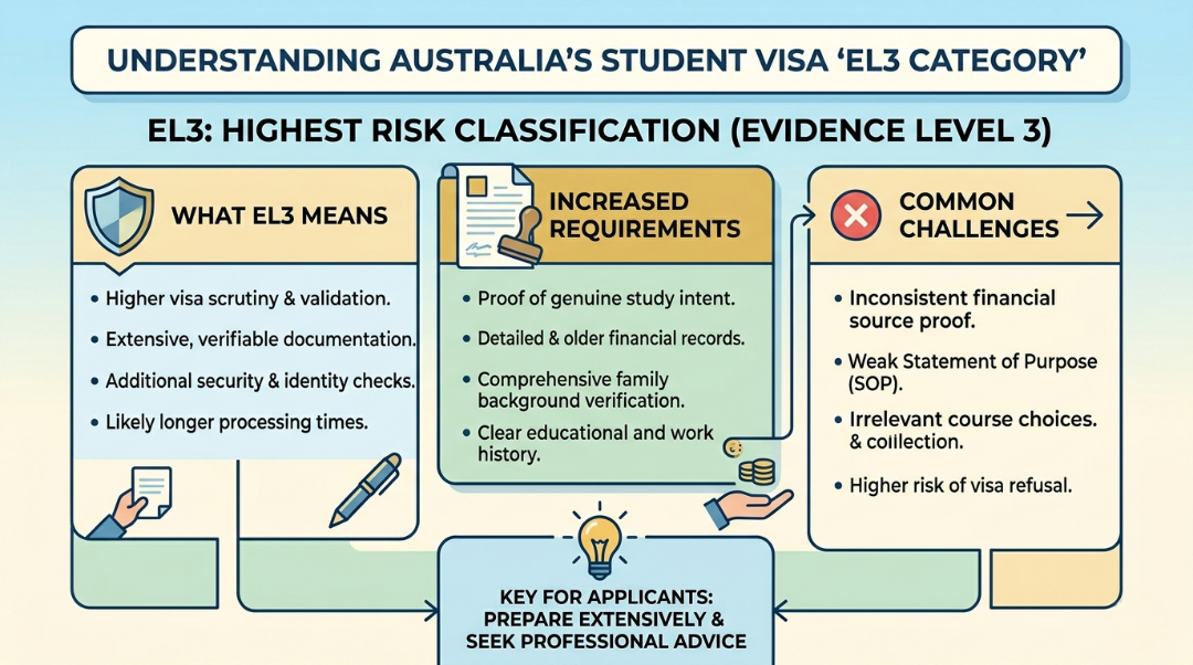 Australia classifies countries into a kind of risk continuum, Evidence Levels (EL1, EL2, EL3). The new rules of EL3 and the highest risk country according to the Australia student visa new rules 2026.
