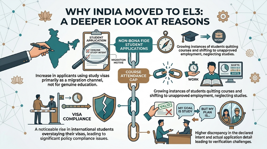 Other factors that led to the changes in EL3 included rising cases of misuse of visas, rising cases of non-beneficial students, and fear of non-genuine students.