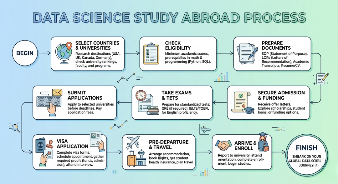 When you intend to study Data Science abroad, then taking a systematic approach would make it easier.