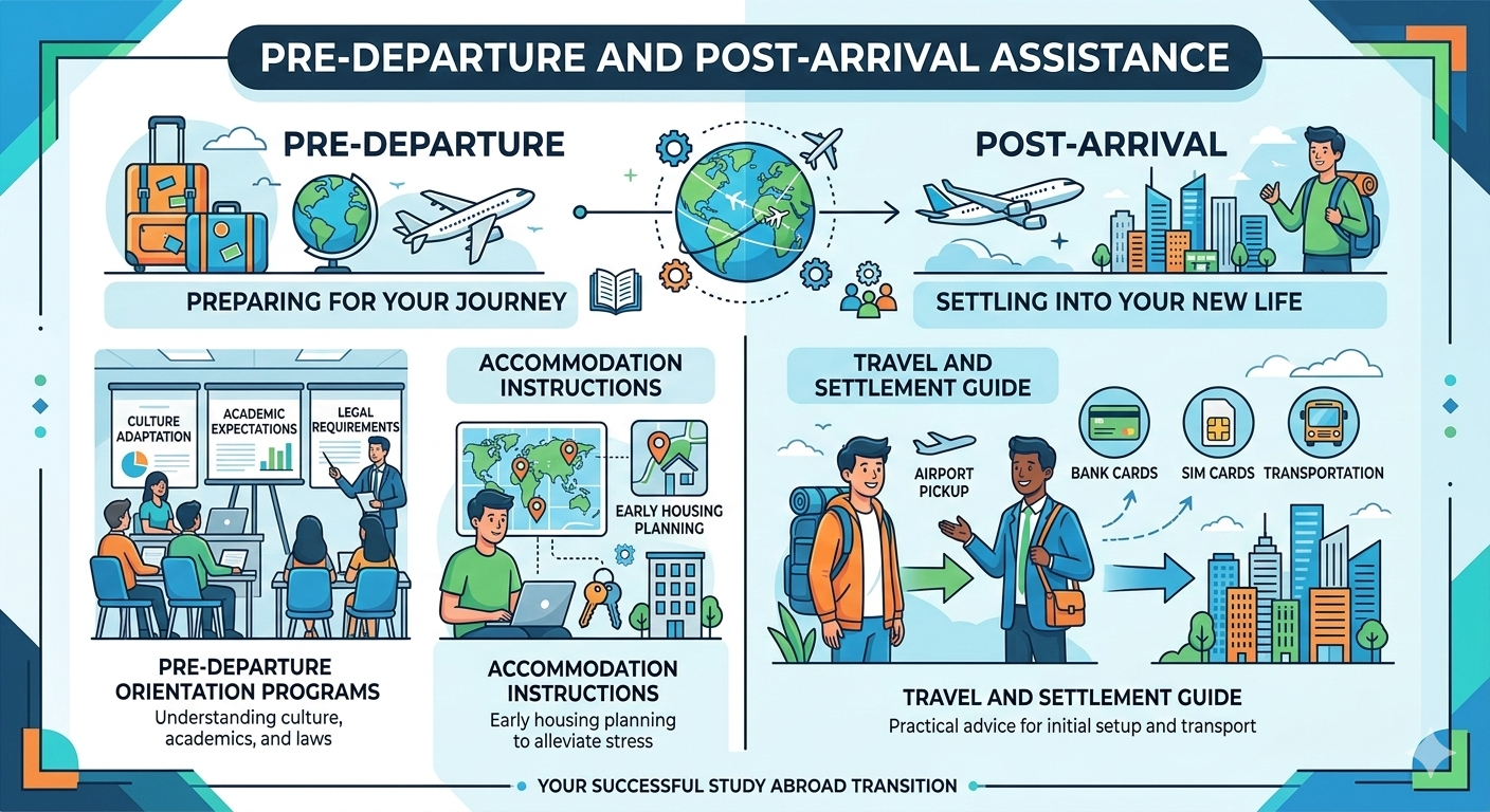 - Pre-departure orientation programs - Students are given an understanding of how they are going to adapt to the culture, academic expectations and legal requirements.