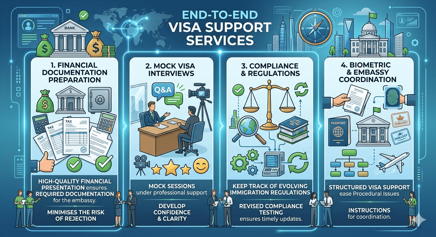 - Biometric and embassy coordination instructions - Structured visa support services will ease the procedural issues among students.