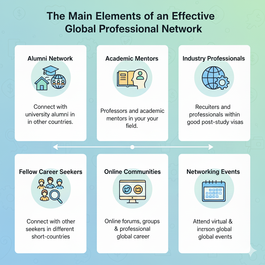 Networking with alumni and professionals will help students access hidden opportunities. Referrals increase the likelihood of shortlisting for interviews and improve international career networking success.