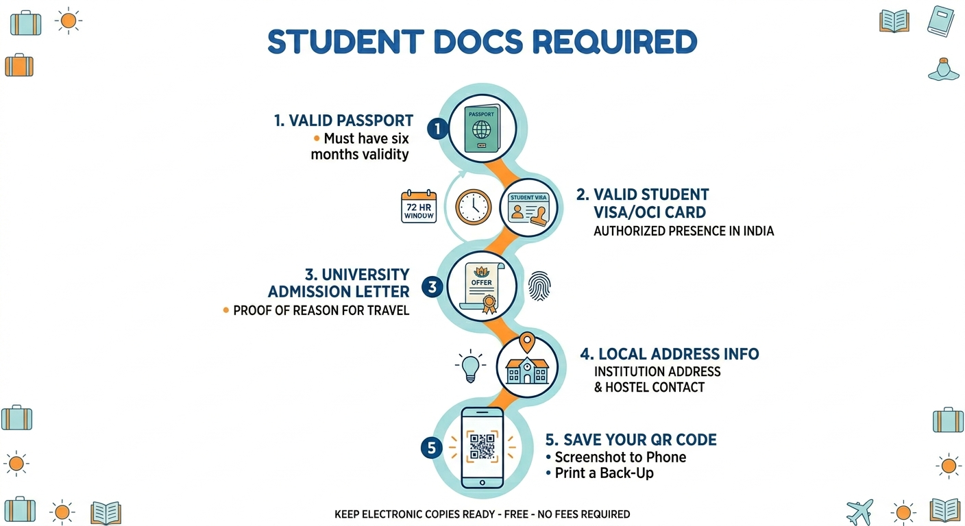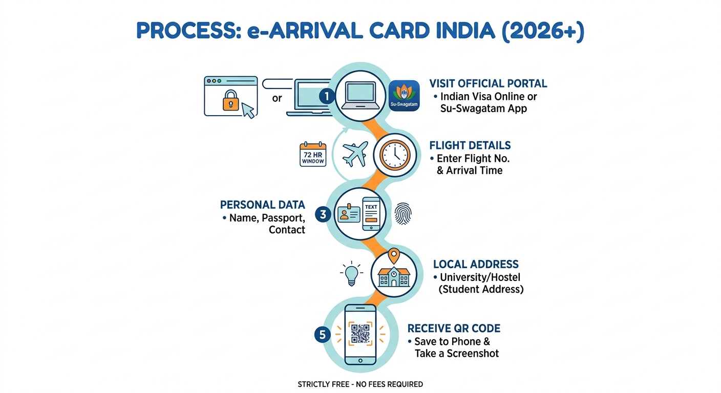 The 72-hour window is among the most crucial India travel policies that students should keep in mind. The system of India e-arrival card 2026 only opens 3 days prior to your flight.