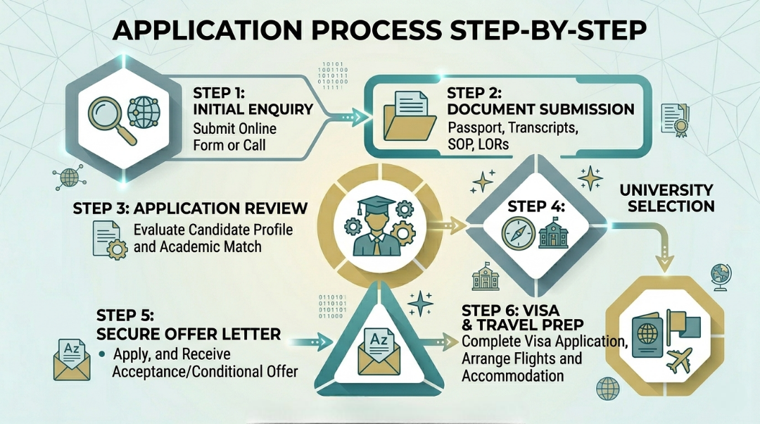 - To develop a good application, it is necessary to prepare documents including SOP, LORs, and test scores.
